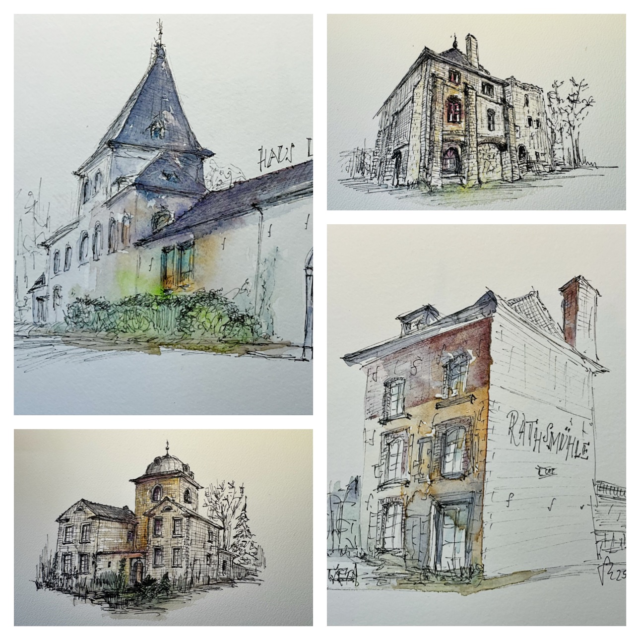 Meine Zeichungen helfen dabei, Lokalgeschichte(n) weiterzugeben, da sie Jung und Alt zum Dialog inspirieren. Genau dies ist z. B. im Rahmen meiner Ausstellung „Mit dem Stift durch Straßen und Zeiten“ geschehen, die ich gemeinsam mit den Heimatfreunden Laurensberg vergangenen August ausgerichtet habe. Die neue visuelle Perspektive hat viele Menschen neugierig gemacht und sie Orte neu entdecken lassen, von denen sie glaubten, sie längst zu kennen.