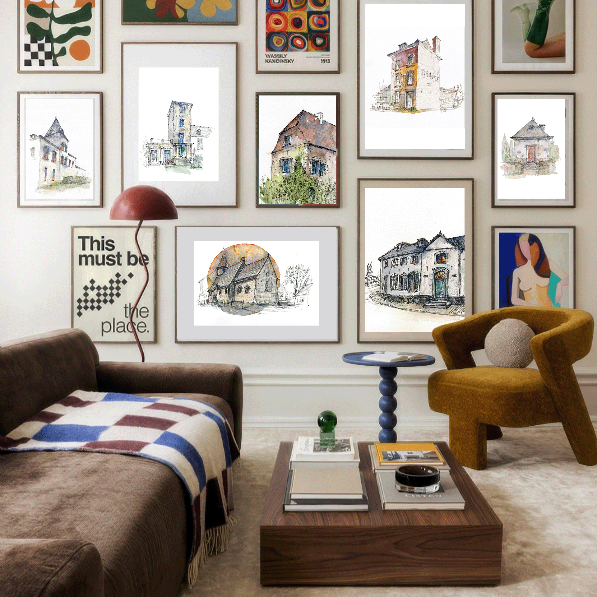 Alle Werke sind echte Originale, von Hand gezeichnet und entstehen in einem Mix aus feinen Linien, Aquarell und atmosphärischer Farbe. Jede Zeichnung versucht nicht nur Fassaden, sondern die Seele der Häuser einzufangen – den stillen Charme, die Geschichten in Mauern, Türen, Winkeln und Schatten.